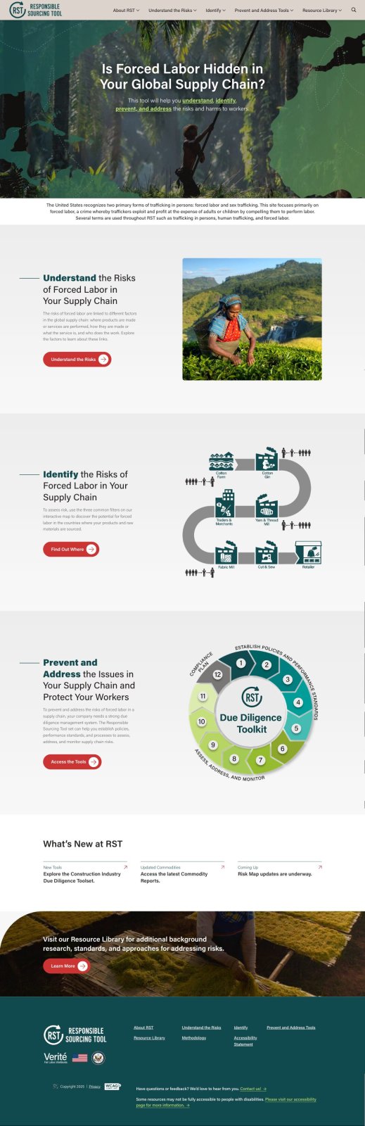 Verité, in partnership with the U.S. Department of State’s Office to Monitor and Combat Trafficking in Persons, needed an updated digital presence for the Responsible Sourcing Tool. The existing site didn’t offer an intuitive user experience and was difficult to update with necessary content in the backend.